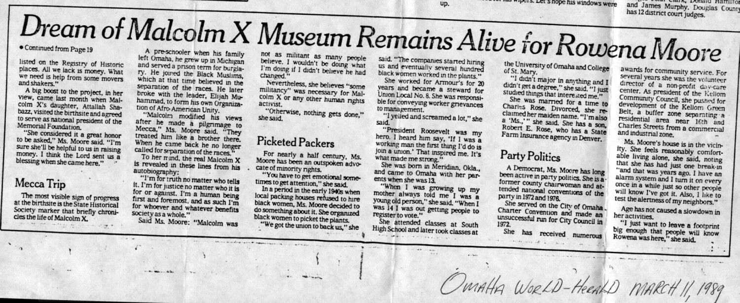 [Home] [Rowena Moore] [Malcolm X Foundation] [Correspondence] [Newspaper Reports]