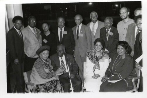Seated L-R : Margaret Burroughs, John Henrik Clarke, Augusta Kappner, Betty Shabazz